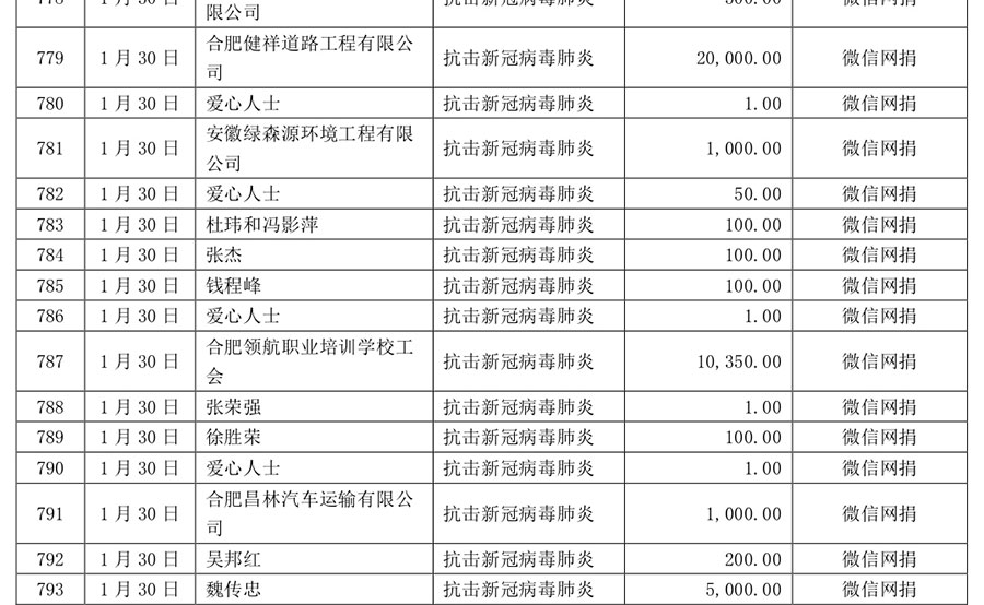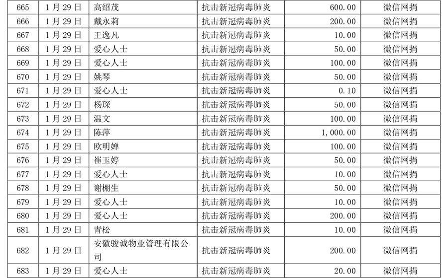 现将合肥市慈善总会接收使用捐赠款情况(1月27日-2月12日16:00时)公示如下:
